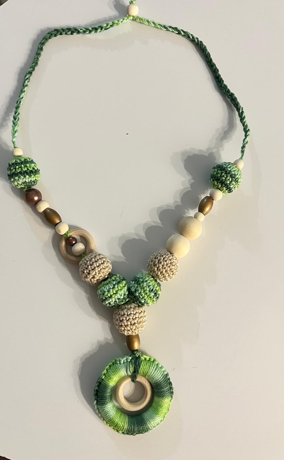 Riscopri il legame con la natura con Sussurro del Bosco, una collana realizzata a mano che racchiude il silenzio dei sentieri verdi e la magia dei boschi. Le perle in cotone lavorate all’uncinetto si fondono armoniosamente con le perle in legno e i colori della terra, creando un accessorio leggero, originale e totalmente naturale.